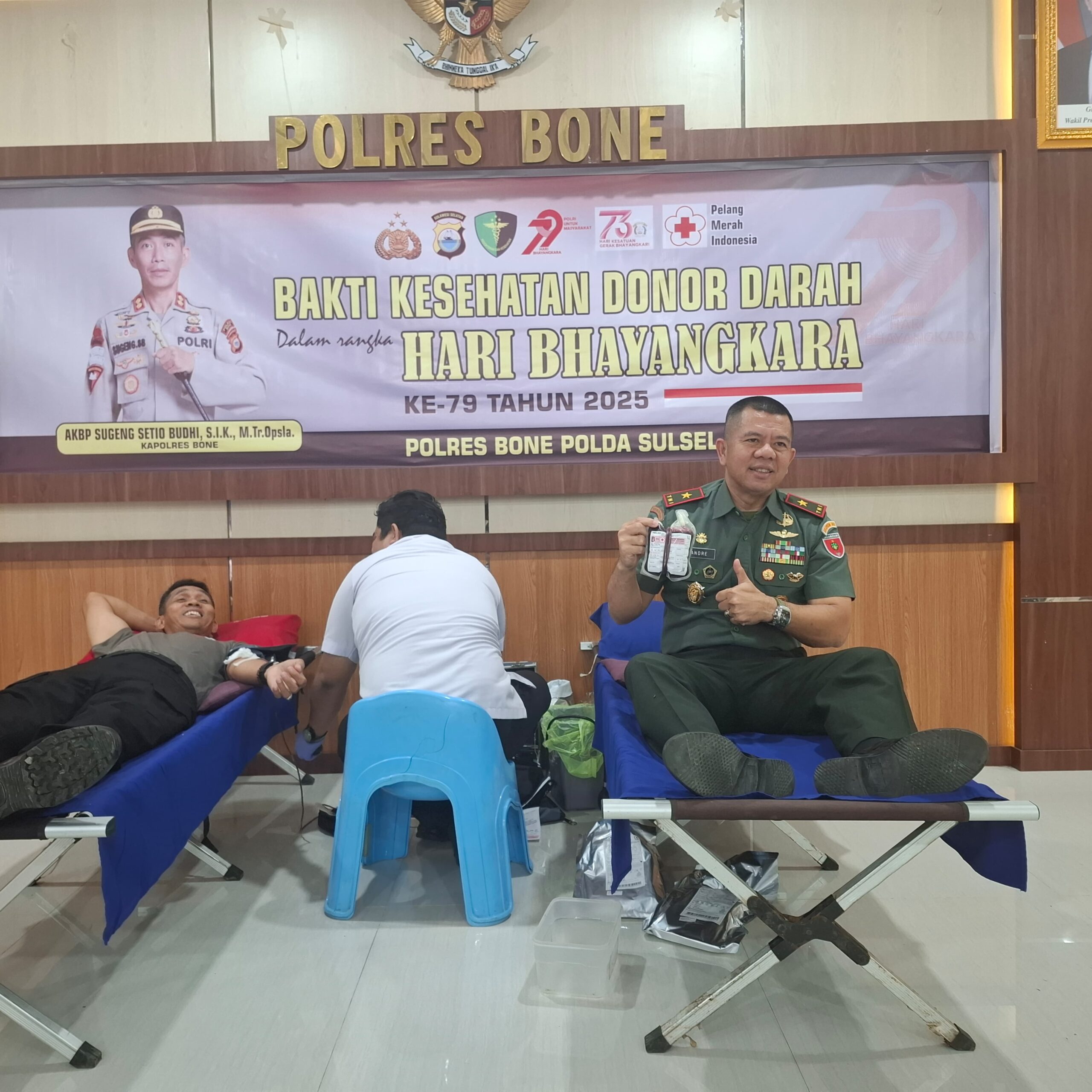 Sambut HUT Bhayangkara Ke-79, Danrem 141/Tp Ikut Mendonorkan Darah, Wujudkan Keharmonisan TNI-Polri untuk Masyarakat