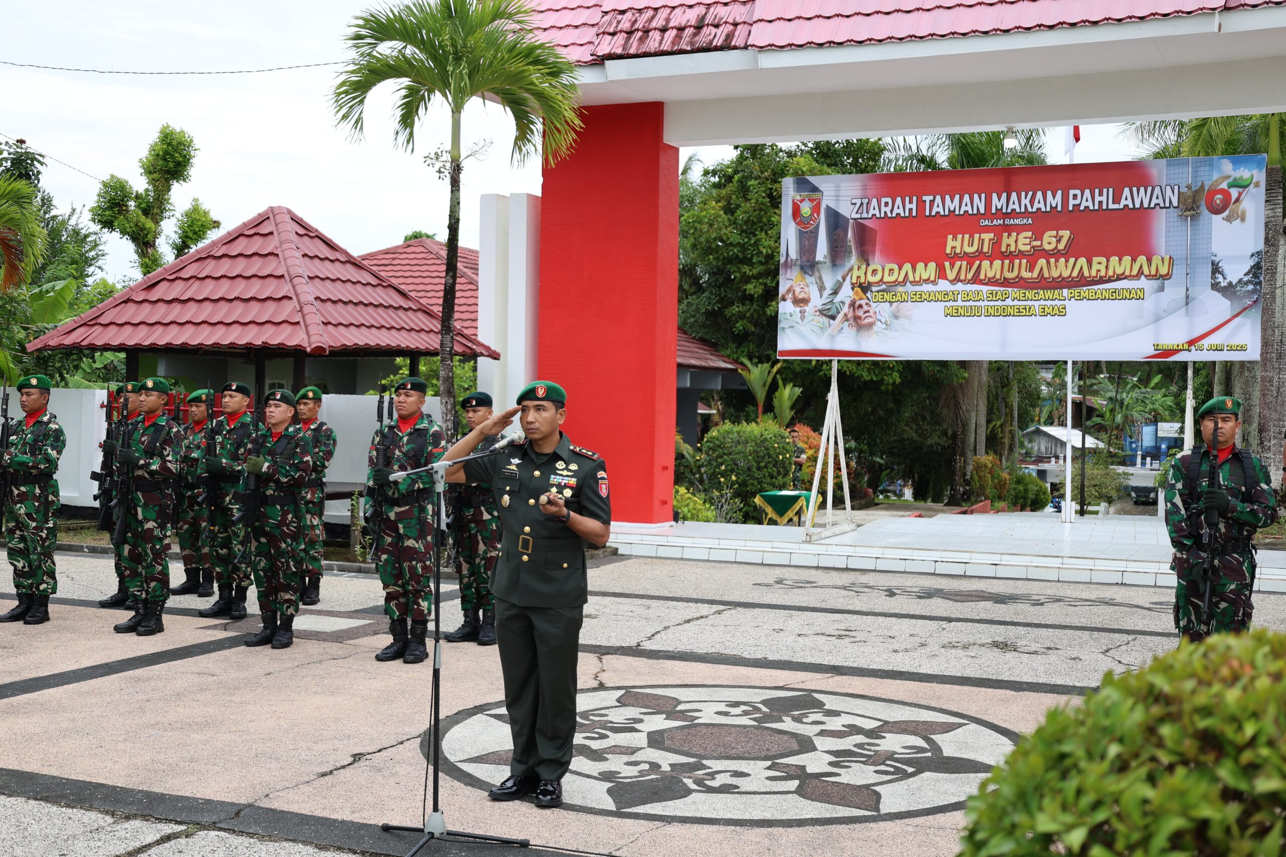 Tarakan – Kodim 0907/Trk menggelar Ziarah Rombongan dalam rangka memperingati HUT ke-67 Kodam VI/Mulawarman di Taman Makam Pahlawan (TMP) Dwikora Jl.Kusuma bangsa,Kel.Gunung Lingkas,Kec.Tarakan Timur,Selasa(15/07/2025).