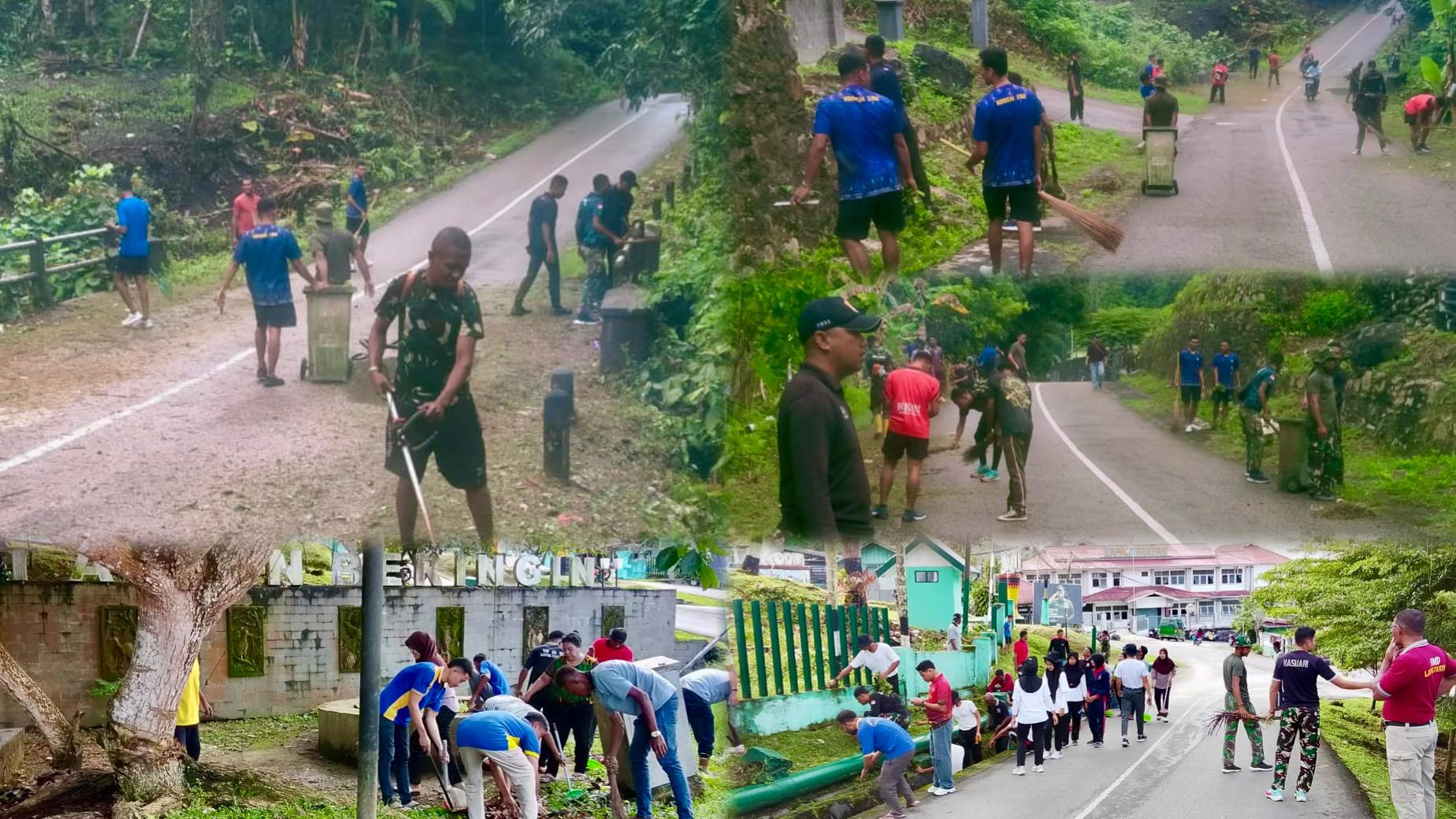 Prajurit Korem 182/JO dan Kodim 1803/Fakfak beserta Koramil jajaran Kodim 1803/Fakfak pun turun melaksanakan Kerja Bakti membersihkan Lingkungan Perkanntoran dan Kampung – Kampung.