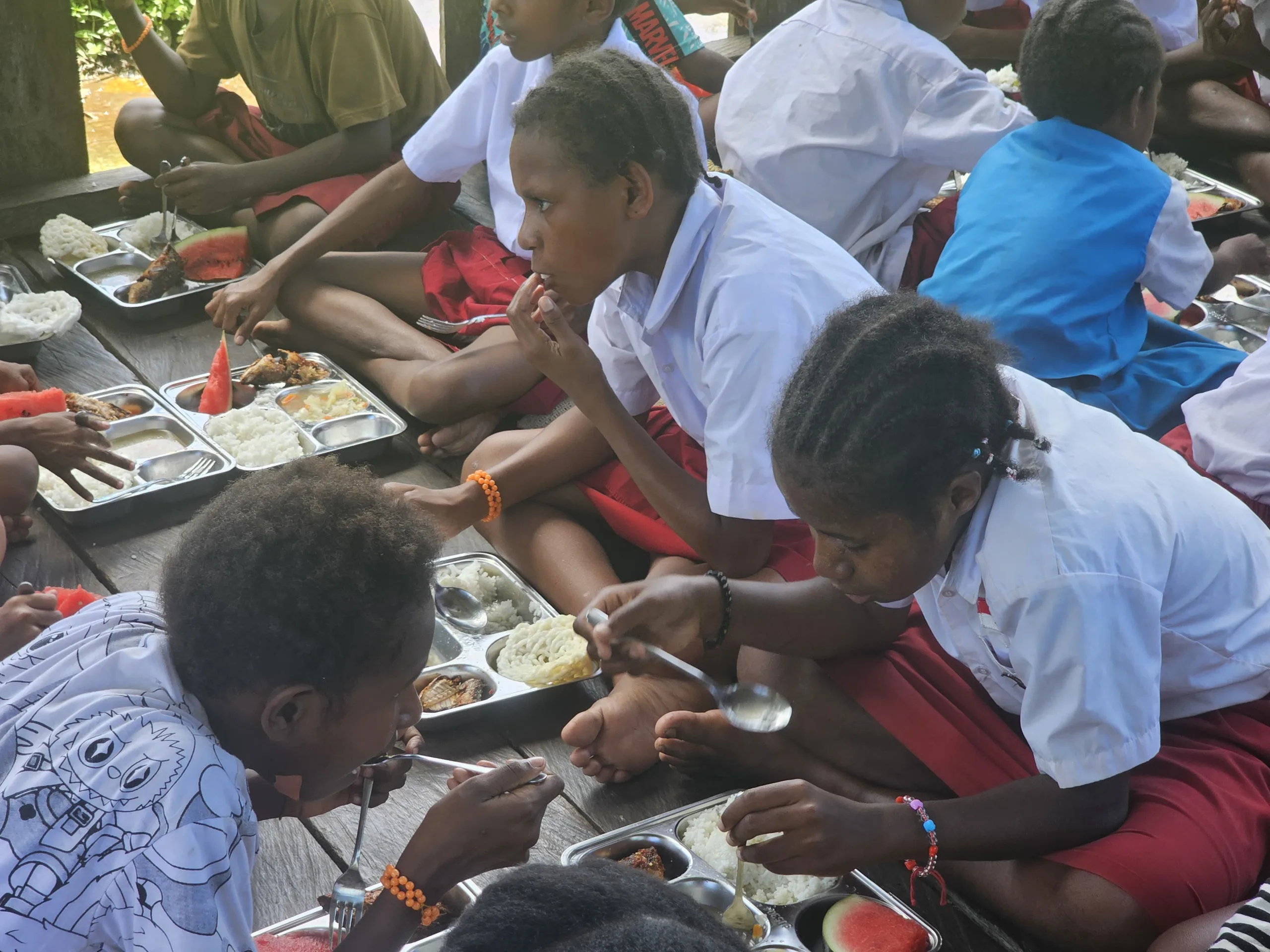 Dalam kegiatan tersebut, prajurit Satgas membagikan berbagai jenis makanan bergizi seperti susu, dan buah-buahan kepada para siswa. Selain pembagian makanan, Satgas juga memberikan edukasi sederhana tentang pentingnya menjaga pola makan sehat dan menjaga kebersihan diri sejak usia dini.