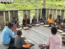 Pada hari Sabtu (25/10), prajurit Satgas Pamtas Mobile Yonif 733/Masariku tiba di SD Rimba YPPK Yan Smith Mumugu dengan membawa makanan bergizi lengkap dengan lauk pauk, buah-buahan segar, dan susu. Kedatangan mereka disambut dengan senyum ceria dan antusiasme dari para siswa dan guru.