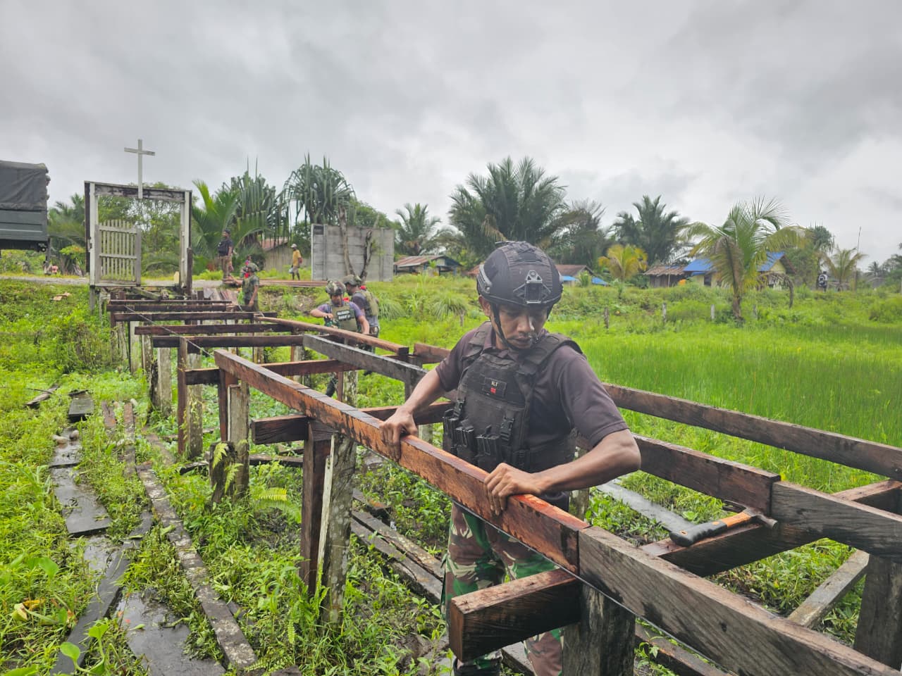 Kegiatan yang dilaksanakan pada hari Rabu (10/09) ini merupakan kelanjutan dari upaya Satgas Pamtas Mobile Yonif 733/Masariku untuk membantu memperbaiki infrastruktur yang rusak dan berdampak pada aktivitas masyarakat di wilayah penugasan. Jembatan ini merupakan akses penting bagi umat Katolik Kuasi Paroki Santo Damian untuk melaksanakan kegiatan keagamaan dan sosial.