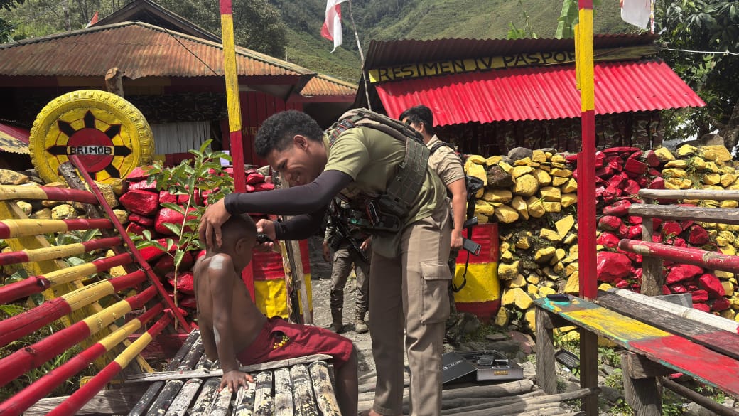 Puncak Jaya, Personel Satuan Tugas (Satgas) Tindak Operasi Damai Cartenz 2025 menggelar kegiatan sosial berupa layanan cukur rambut gratis bagi anak-anak di Distrik Mulia, Kabupaten Puncak Jaya, Papua Pegunungan, pada Rabu (23/4/2025).