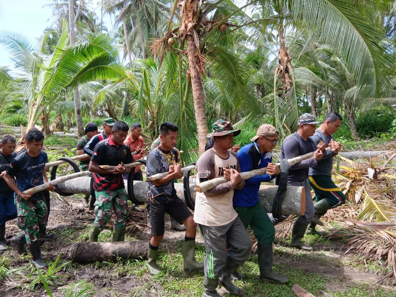 Hal ini terbukti pada pelaksanaan pengerjaan TMMD, masyarakat bersama dengan anggota Satgas TMMD bahu membahu menggenjot pengerjaan sasaran fisik dengan semangat seperti pada dalam pengerjaan contoh pada saat ini bersama menggotong kayu untuk beberapa sasaran fisik.