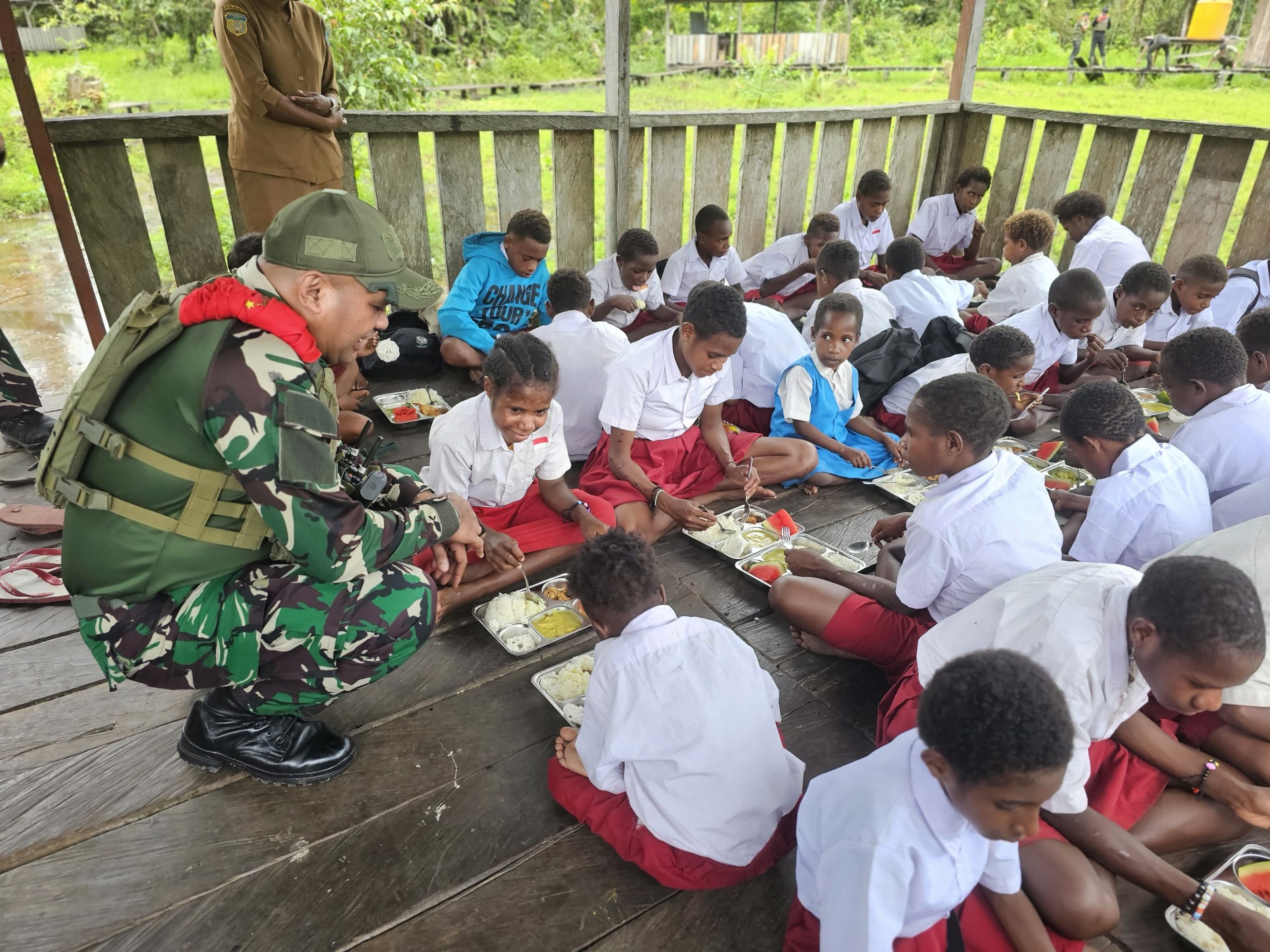 “Anak-anak adalah masa depan bangsa. Memberikan makanan bergizi merupakan langkah sederhana namun penting untuk memastikan mereka tumbuh sehat, kuat, dan siap meraih cita-cita. Kami ingin kehadiran TNI tidak hanya sebatas menjaga keamanan, tetapi juga membawa manfaat nyata bagi masyarakat, khususnya di bidang kesehatan dan pendidikan,” ujar Letkol Inf. Julius Jongen Matakena.