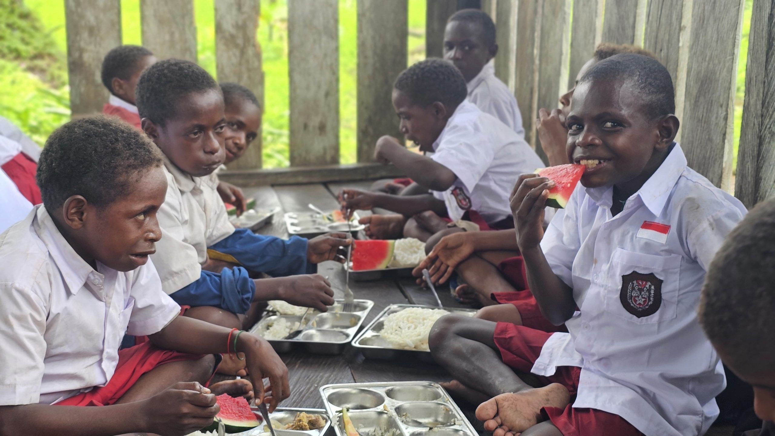 “kami sangat terbantu dengan adanya program ini, karena gizi yang cukup akan berdampak baik bagi pertumbuhan dan prestasi anak-anak,” kata patris, guru sd rimba mumugu.