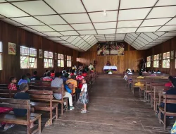 Nduga, Papua — Dalam suasana penuh kehangatan dan kekeluargaan, prajurit Satgas Yonif 733/Masariku Pos Batas Batu melaksanakan Program Minggu Kasih dengan beribadah bersama masyarakat di Gereja Katolik Kampung Mumugu, Distrik Krepkuri, Kabupaten Nduga, pada Minggu (2/11/2025).