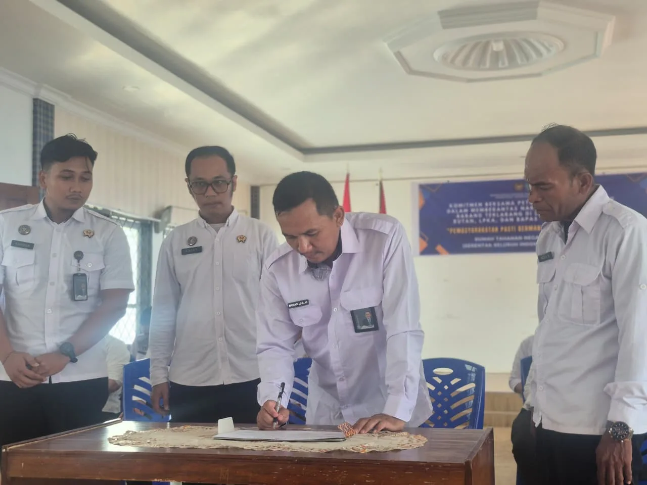 Seluruh pejabat dan petugas Rutan Palu mengikuti prosesi penandatanganan di Aula Pogombo Rutan dengan dipimpin oleh Kepala Kesatuan Pengamanan Rutan (Ka.KPR) Rutan Palu, Muhammad Rias, selaku Plh. Kepala Rutan Kelas IIA Palu, Fani Andika.