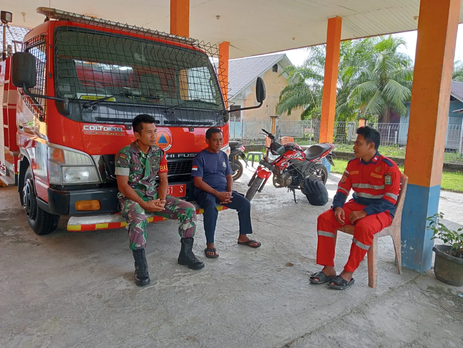 Selalu Bersinergi, Babinsa Koramil 02/Simteng Lakukan Komsos Bersama Damkar