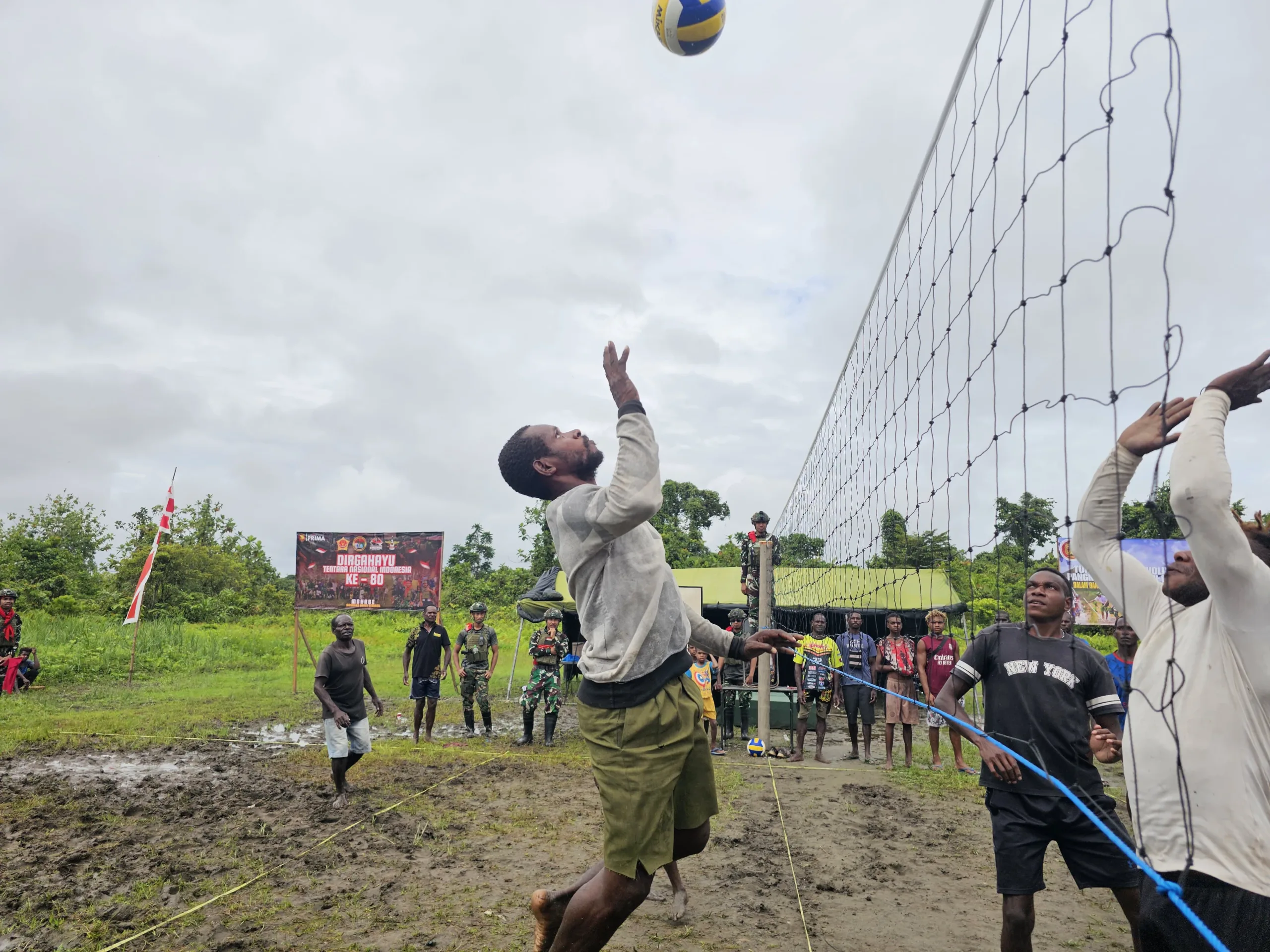 Nduga, Papua – Gemuruh semangat olahraga dan kemanunggalan TNI-rakyat terasa kental di Distrik Krepkuri, Kabupaten Nduga. Dalam rangka memeriahkan Hari Ulang Tahun (HUT) TNI ke-80, Satgas Pamtas RI-PNG Mobile Yonif 733/Masariku menggelar turnamen bola voli Pangkogabwilhan III CUP yang kini memasuki hari ketiga dengan babak semifinal yang mendebarkan. Ajang ini bukan hanya sekadar pertandingan, tetapi juga wujud nyata kedekatan TNI dengan masyarakat di ujung timur Indonesia.