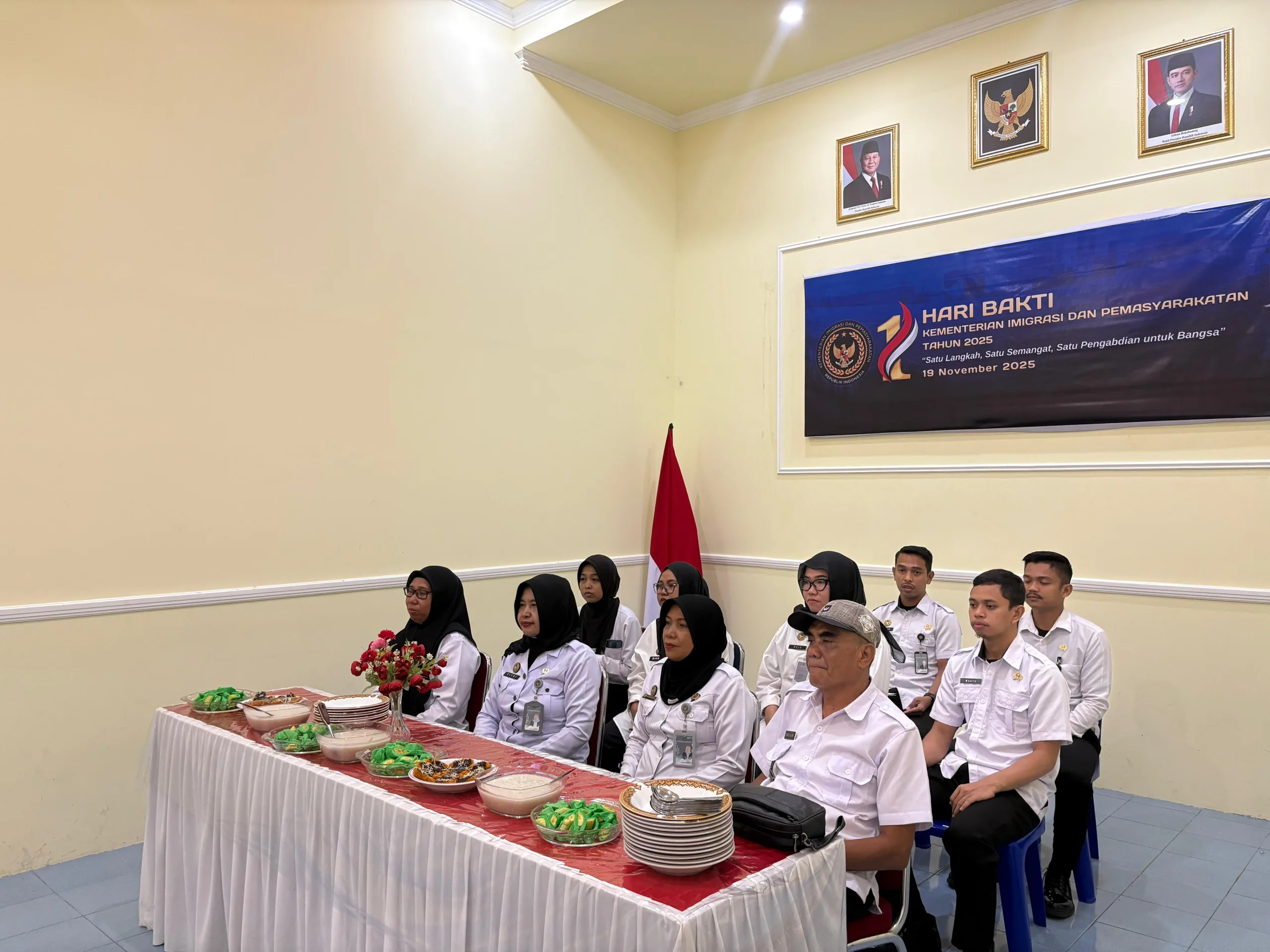 Makassar – Kepala Rumah Tahanan Negara Kelas IB Selayar, Kanwil Ditjenpas Sulsel, Sofian Hadi Sasmita menghadiri Tasyakuran Hari Bakti Kementerian Imigrasi dan Pemasyarakatan ke-1 Tahun 2025 di Aula Kanwil Ditjenpas Sulsel pada Rabu (19/11).