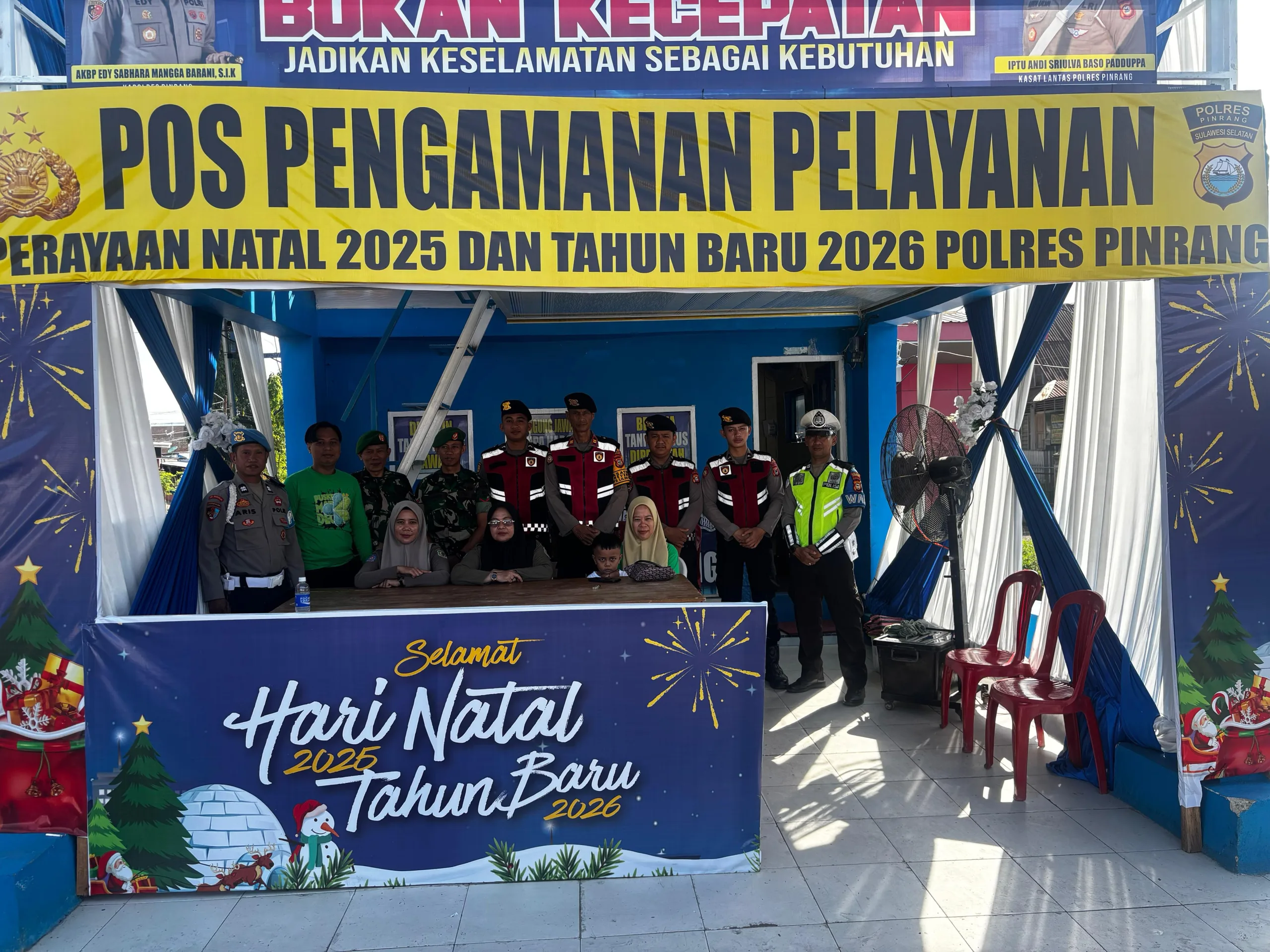 Pinrang_ Dalam rangka menjaga situasi keamanan dan ketertiban masyarakat selama perayaan Natal dan Tahun Baru (Nataru), sinergitas TNI–Polri bersama stakeholder terkait terus ditingkatkan melalui pengamanan di Pos Pengamanan (Pospam) Nataru yang tersebar di wilayah Kabupaten Pinrang, Jum’at (26/12/2025).