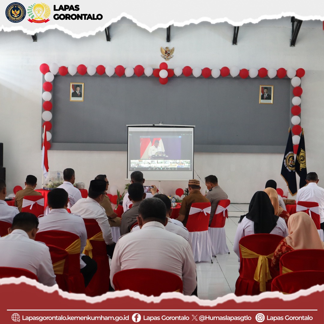 Gorontalo, INFO_PAS – Dalam suasana penuh syukur dan semangat kebersamaan tasyakuran Hari Bhakti Pemasyarakatan (HBP) ke-61 yang digelar di Lapas Kelas IIA Gorontalo, Senin (28/04), bukan sekadar seremoni tahunan. Melalui koneksi daring yang terhubung secara nasional dengan seluruh satuan kerja Pemasyarakatan, momentum ini menjadi ruang refleksi, rasa syukur, sekaligus peneguhan tekad untuk membangun pemasyarakatan yang lebih humanis, bermartabat dan *”Pasti Bermanfaat Untuk Masyarakat”*