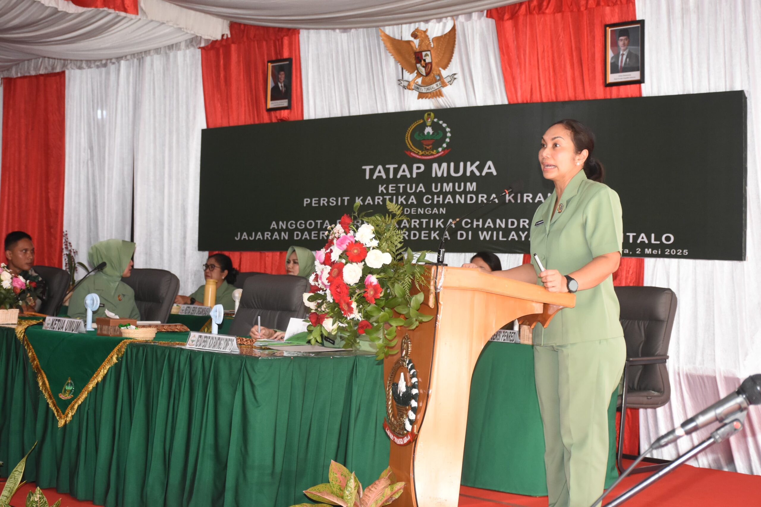 Gorontalo, Ketua Umum Persit Kartika Chandra Kirana, Ibu Uli Simanjuntak, melaksanakan tatap muka yang hangat dan penuh kekeluargaan dengan anggota Persit Kartika Chandra Kirana jajaran Daerah XIII/Merdeka yang bertugas di wilayah Gorontalo. Acara yang berlangsung di Mako Yonif R 715/Motuliato, di Desa Tolongio Kecamatan Anggrek Kabupaten Gorontalo Utara. Jum’at (02/05/2025),