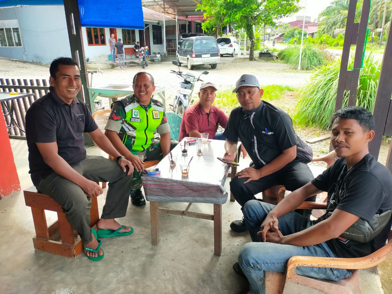 Nagan Raya, Babinsa Koramil 04/Beutong Kodim 0116/Nagan Raya Koptu Mardianto bersama warga desa binaan berkomunikasi sosial dengan warga desa Keude seumot, kecamatan Beutong Kabupaten Nagan Raya.