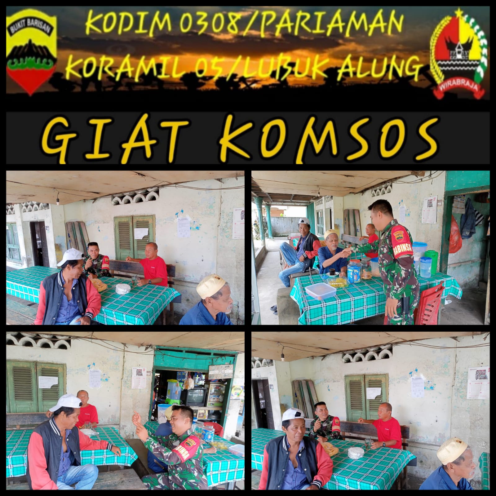 LUBUK ALUNG, – Kegiatan Komunikasi Sosial (Komsos) Bintara Pembina Desa (Babinsa) Koramil 05/ lubuk Alung, kodim 0308/ Pariaman Babinsa Serda Topitman