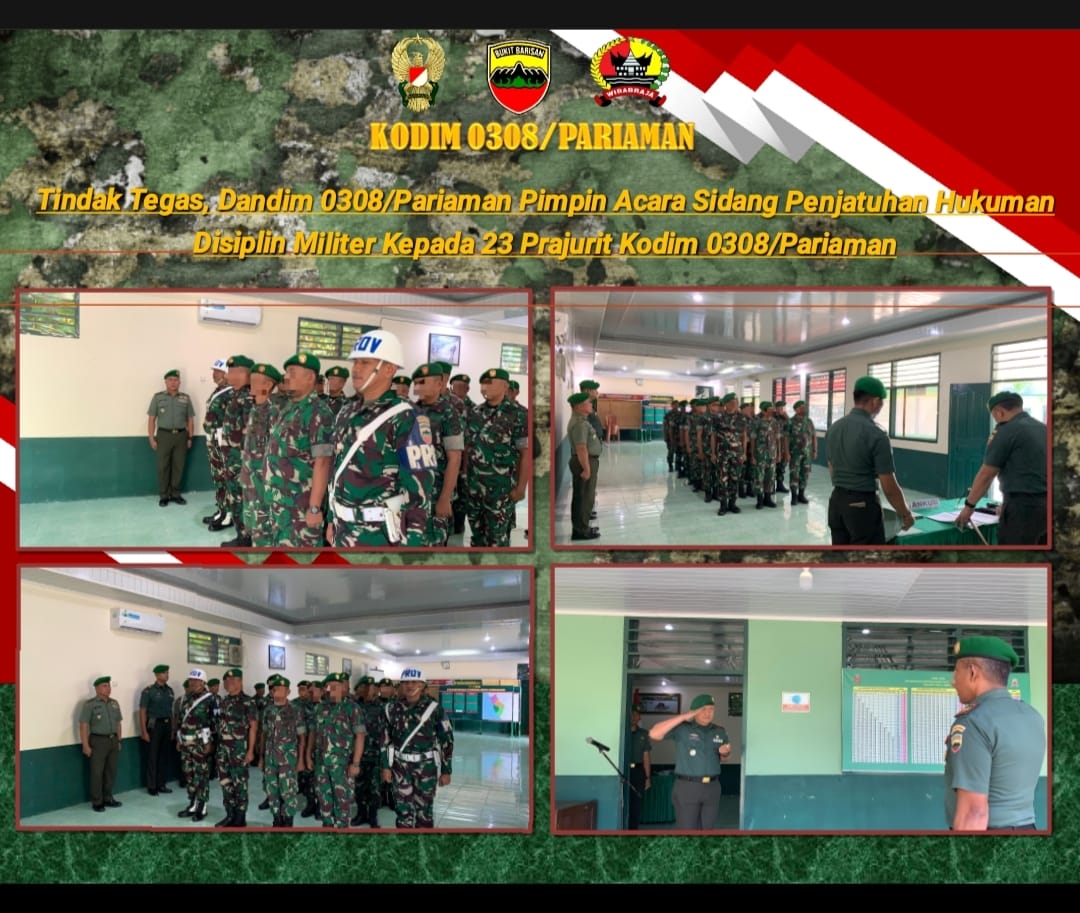 Sebanyak 23 anggota Kodim 0308/Pariaman di hadirkan di dalam Aula Kodim 0308/Pariaman, dalam acara sidang disiplin ini juga di Hadiri oleh Kasdim 0308/Pariaman, para Danramil jajaran Kodim 0308/Pariaman, Perwira Staf Kodim 0308/Pariaman serta 23 orang anggota Kodim 0308/Pariaman yang menjalankan sidang hukuman disiplin militer.