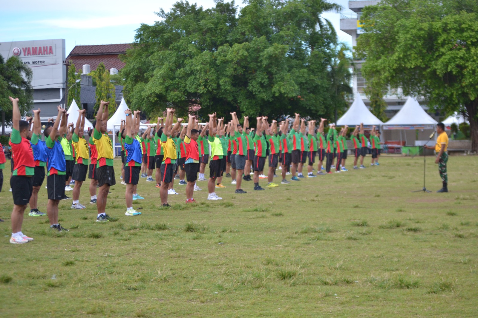 Kegiatan ini dimulai dengan melakukan tes tensi darah oleh tim kesehatan RS Sumantri kemudian dilanjutkan dengan pemanasan yang dipandu oleh anggota Binjas Korem 141/TP. Kegiatan samapta kesegaran jasmani ini diikuti oleh seluruh anggota Kodim 1405/Parepare yang terdiri dari lari 12 menit, pull-up, push-up, sit-up, dan shuttle run.