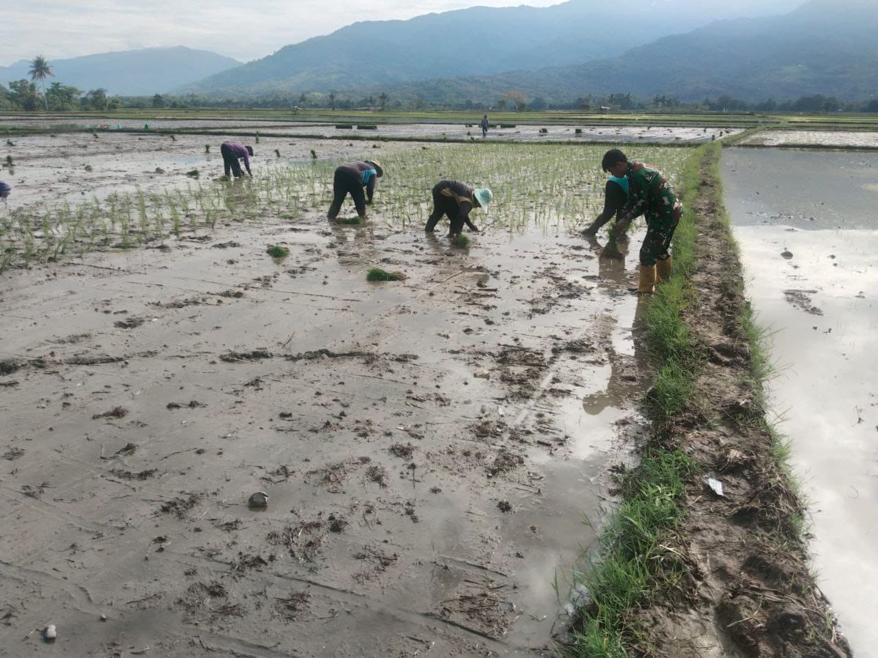 Dalam kesempatan itu Peltu Abdul Azis menyampaikan, Kegiatan pendampingan kepada kelompok tani merupakan kegiatan rutin yang dilaksanakan, salah satunya membantu saat menanam padi.