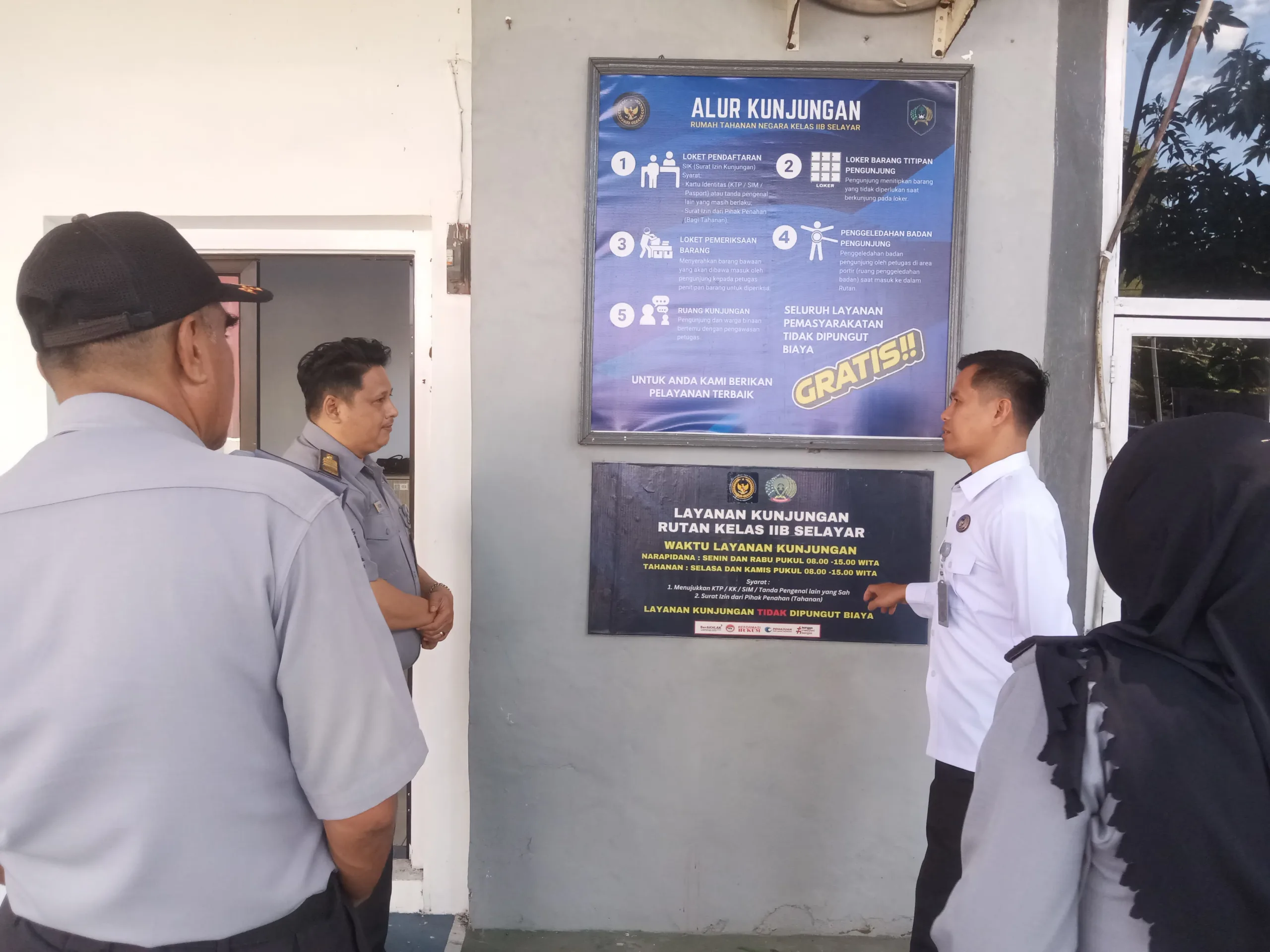 Selayar – Dalam rangka memastikan kualitas layanan publik dan menjaga ketertiban lingkungan kerja, Kepala Rumah Tahanan Negara (Rutan) Kelas IIB Selayar, Sofian Hadi Sasmita bersama pejabat struktural melakukan kegiatan monitoring loket pelayanan dan area luar kantor, Selasa (21/10).