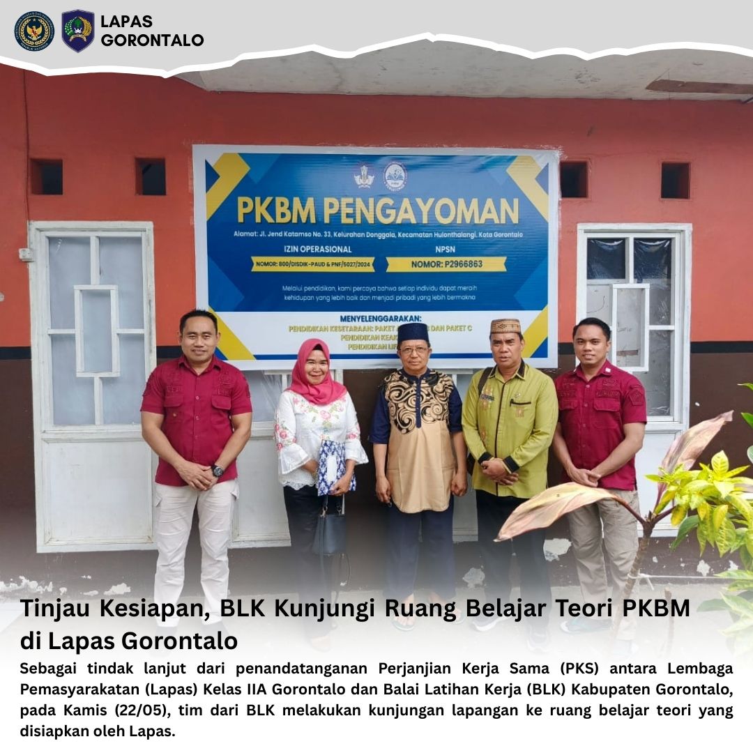 Gorontalo – INFO_PAS – Sebagai tindak lanjut dari penandatanganan Perjanjian Kerja Sama (PKS) antara Lembaga Pemasyarakatan (Lapas) Kelas IIA Gorontalo dan Balai Latihan Kerja (BLK) Kabupaten Gorontalo, pada Kamis (22/05), tim dari BLK melakukan kunjungan lapangan ke ruang belajar teori yang disiapkan oleh Lapas.