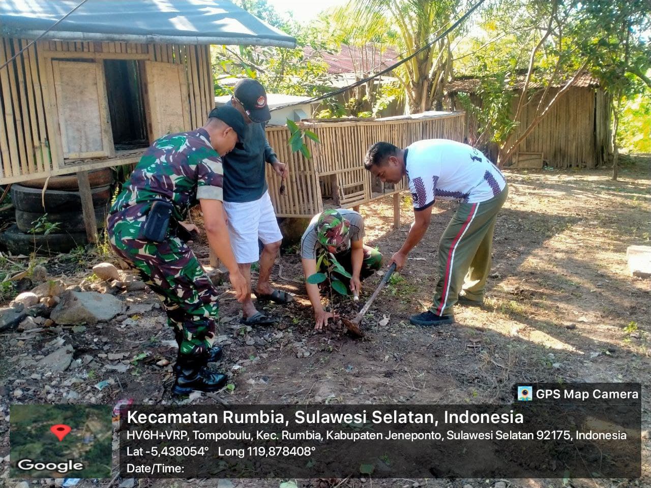 Jeneponto – Dengan semangat kebersamaan dan kepedulian terhadap masa depan lingkungan, Babinsa Koramil 04/Kelara Kodim 1425/Jeneponto, Sertu Armansyah, memimpin aksi kerja bakti penanaman 150 pohon buah di Dusun Kappe, Desa Tompo Bulu, Kecamatan Rumbia, Kabupaten Jeneponto. Selasa, 24/6/2025.