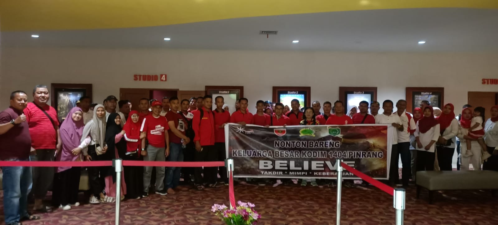 Pinrang_ Dalam upaya menumbuhkan semangat nasionalisme, Kodim 1404/Pinrang menggelar kegiatan nonton bareng film patriotik berjudul “Believe”, bertempat di Dakota Cinema Kabupaten Wajo, Jum’at (15/08/2025).