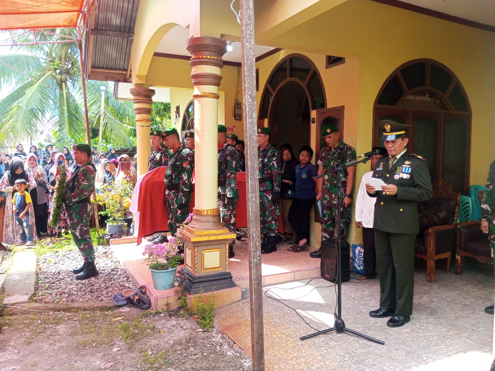 ”Saya atas nama keluarga besar Kodim 0308/Pariaman mengucapkan ikut berduka cita yang sedalam-dalamnya, marilah kita memanjatkan doa kehadirat Allah SWT Tuhan Yang Maha Esa semoga dosa dan kesalahan almarhum diampuni oleh Allah yang maha kuasa, dan kepada keluarga yang ditinggalkan agar dapat menerima kepergian almarhum dengan tabah dan ihklas,” ucap Kapten Czi Delri Putra.