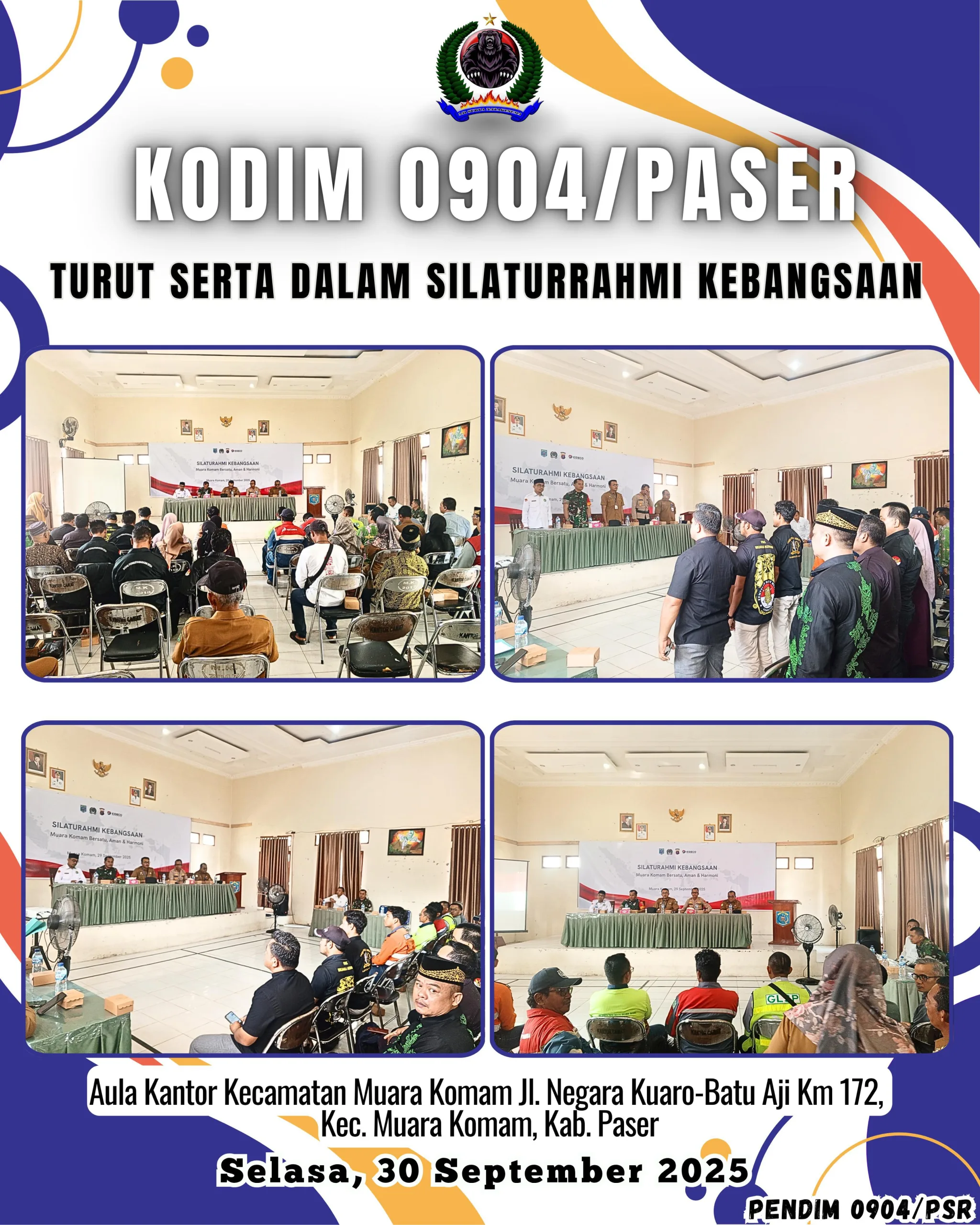Kodim 0904/Psr, Korem 091/ASN, Kodam VI/Mlw – Bertempat di Aula Kantor Kecamatan Muara Komam Jl. Negara Kuaro-Batu Aji Km 172, Kec. Muara Komam, Kab. Paser telah dilaksanakan Rapat dan Silaturrahmi Wawasan Kebangsaan.