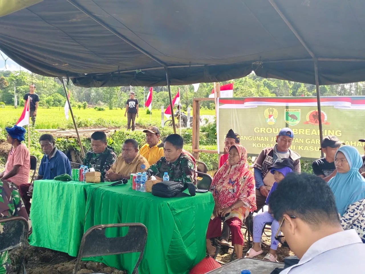“Kami seluruh unsur pemerintah daerah, tokoh masyarakat, tokoh adat, tokoh agama, dan masyarakat Kampung Wardik mengucapkan terima kasih kepada Bapak Presiden Republik Indonesia, Bapak Kasad, dan Bapak Pangdam XVIII/Kasuari atas pembangunan jembatan di Kampung Wardik yang sangat bermanfaat bagi masyarakat.”