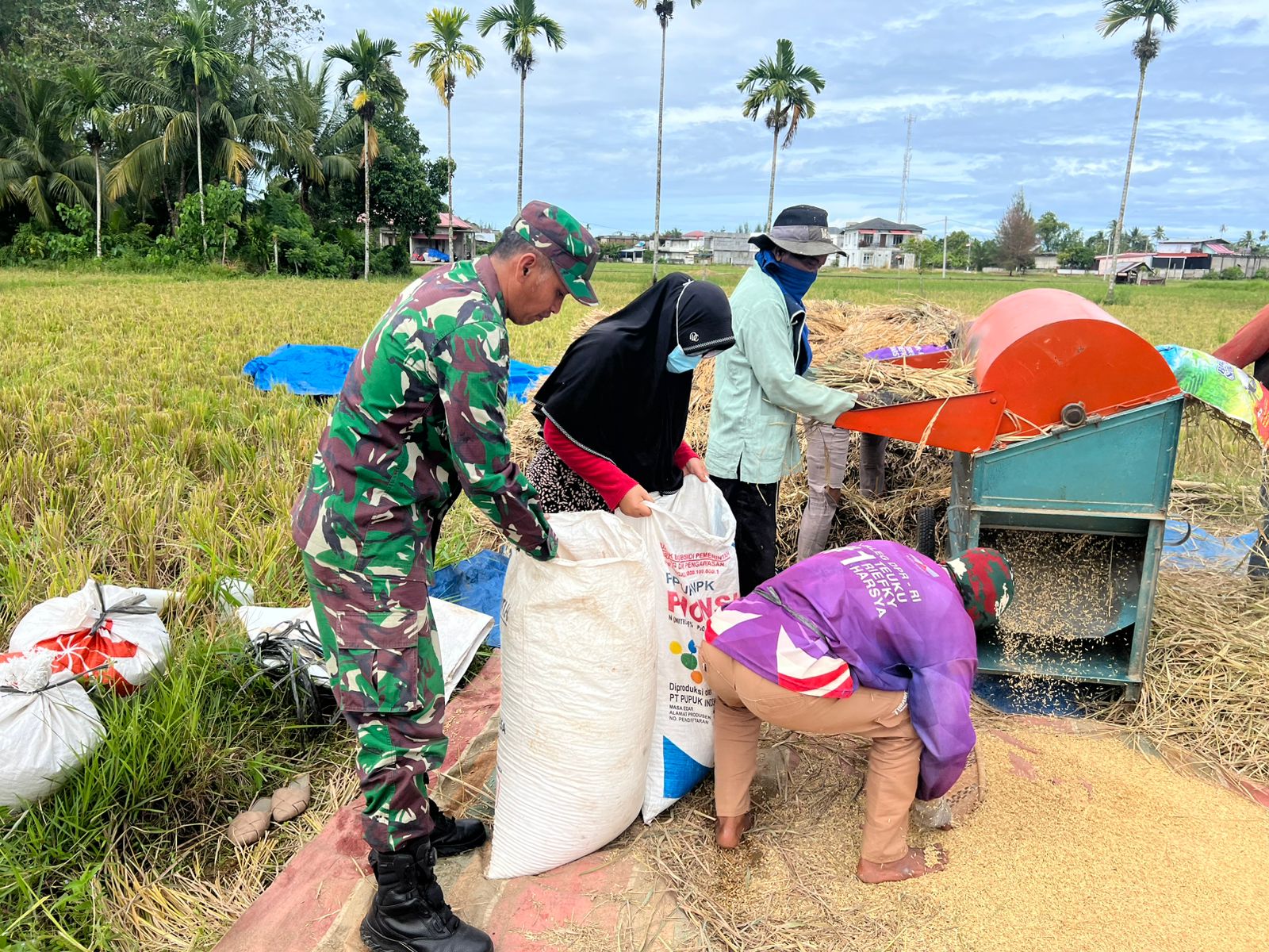 Aceh Selatan – Babinsa jajaran Kodim 0107/Aceh Selatan terus menunjukkan komitmennya dalam mendukung ketahanan pangan di wilayah binaan. Kali ini, Babinsa Koramil 02/Labuhanhaji Tengah Sertu Adrius Putra turun langsung ke sawah di Desa Dalam untuk mendampingi para petani dalam kegiatan perontokan padi sebagai bentuk pendampingan dan motivasi kepada masyarakat tani.