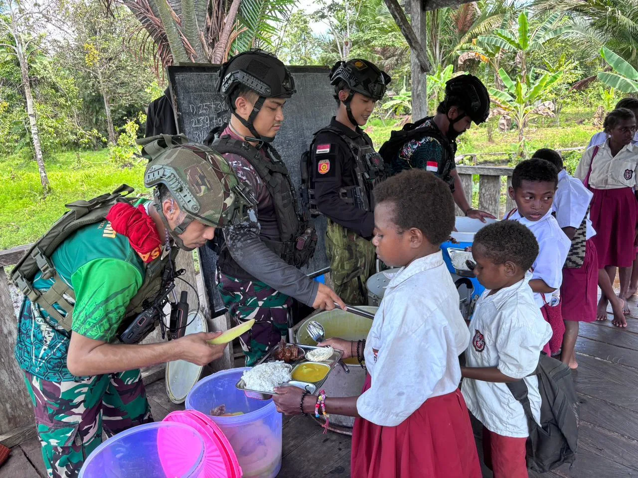 Kegiatan ini bertujuan untuk membantu pemenuhan kebutuhan gizi anak-anak sekolah dasar di daerah terpencil sekaligus menumbuhkan kesadaran akan pentingnya pola makan sehat sejak dini. Dalam kegiatan tersebut, personel Satgas membagikan makanan bergizi lengkap dengan lauk pauk bernutrisi kepada para siswa, disertai edukasi ringan mengenai pentingnya menjaga kebersihan dan kesehatan tubuh.