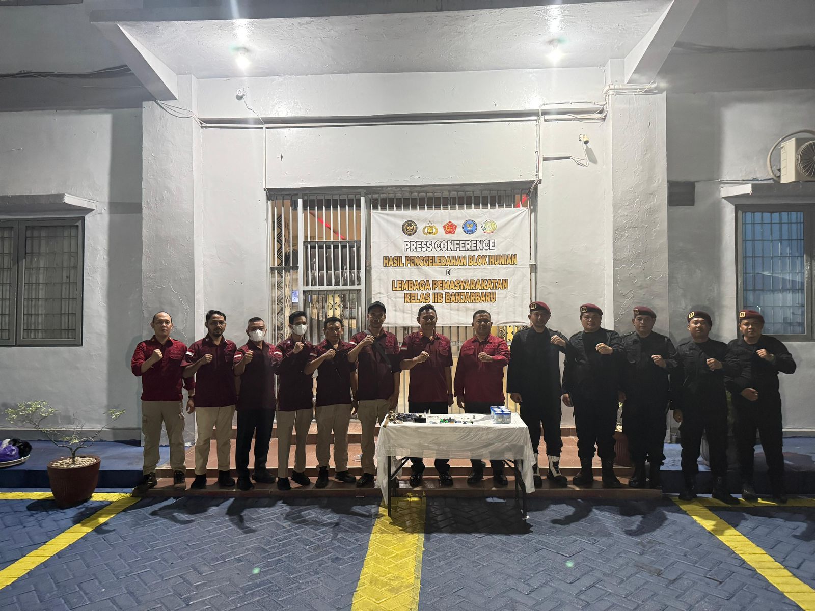 Banjarbaru, INFO_PAS – Tim Satuan Operasional Kepatuhan Internal (Satops Patnal) Kantor Wilayah (Kanwil) Direktorat Jenderal Pemasyarakatan (Ditjenpas) Kalimantan Selatan, gelar razia dan tes urine di Lembaga Pemasyarakatan (Lapas) Kelas IIB Banjarbaru, Senin (5/5). Razia dilakukan guna mewujudkan keamanan dan ketertiban (kamtib) di dalam Lapas dengan upaya preventif yakni pemberantasan handphone, pungutan liar, dan narkotika (halinar).