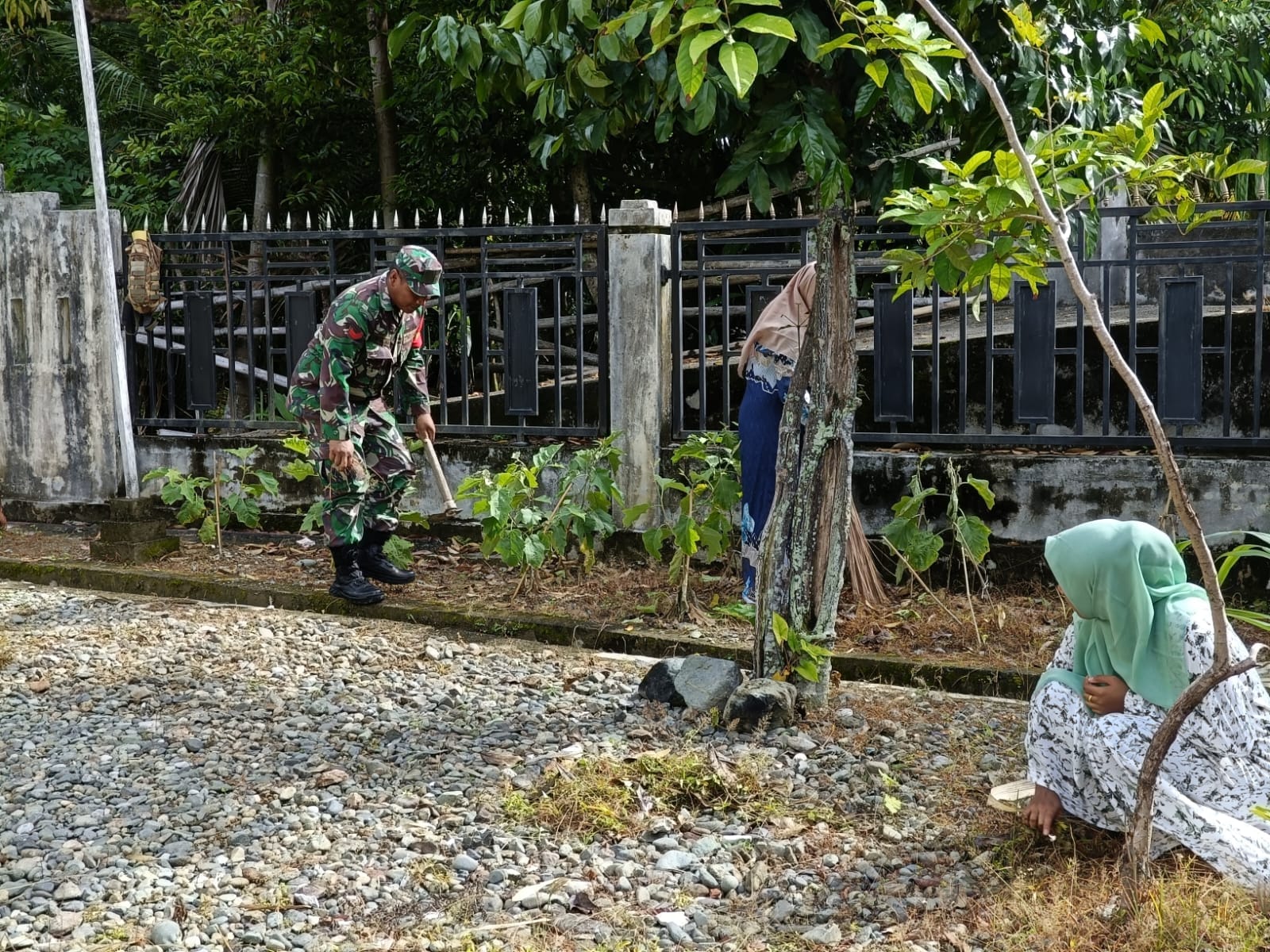 Wujudkan Lingkungan Bersih dan Asri, Babinsa Koramil 05/Samadua Bersama Perangkat Desa dan Warga Gelar Gotong Royong