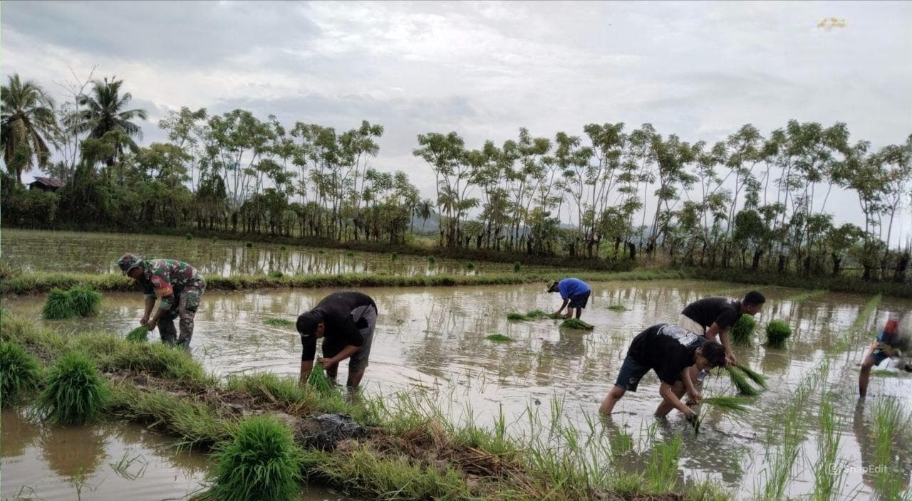 KODIM 1405/PAREPARE – Dalam upaya mendukung program pemerintah dalam ketahanan pangan, Babinsa Koramil 1405-07/Tanete Rilau Koptu Paisal melaksanakan pendampingan penanaman padi milik Bapak Tamrin Kelompok Tani (Poktan) Siamasei di Dusun Buttue Desa Garessi, Kecamatan Tanete Rilau, Kabupaten Barru. Senin (12/05/2025)
